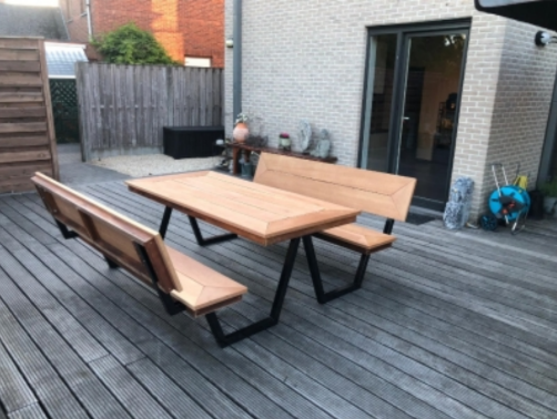 Dat kan met deze prachtige picknicktafel inclusief rugleuning.