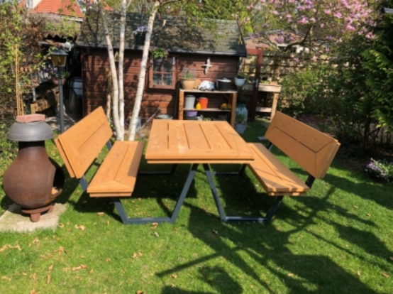 Dat kan met deze prachtige picknicktafel inclusief rugleuning.