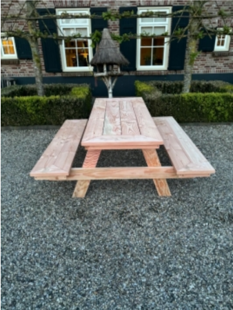 – De tafel is gemaakt van geschaaft douglashout